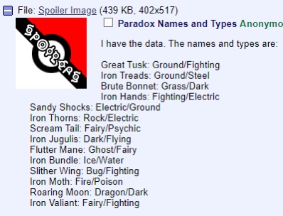 무쇠나방 (미래불카모스) - 불/독 울부짖는달 (고대보만다) - 드래곤/악 무쇠용사 (미래엘레이드) - 페어리/격투